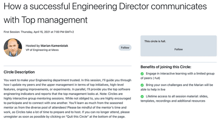 In April 2021, I took a leap with the world under a pandemic’s shadow. I launched a Czech Engineering Leadership meetup to gain and share our wisdom. I purposely made the meetup private to keep the audience small and invited only people with something unique to add.