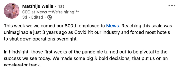 - Current job: I was in a VPE job at Mews I loved.