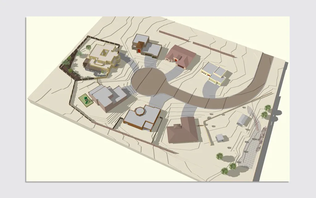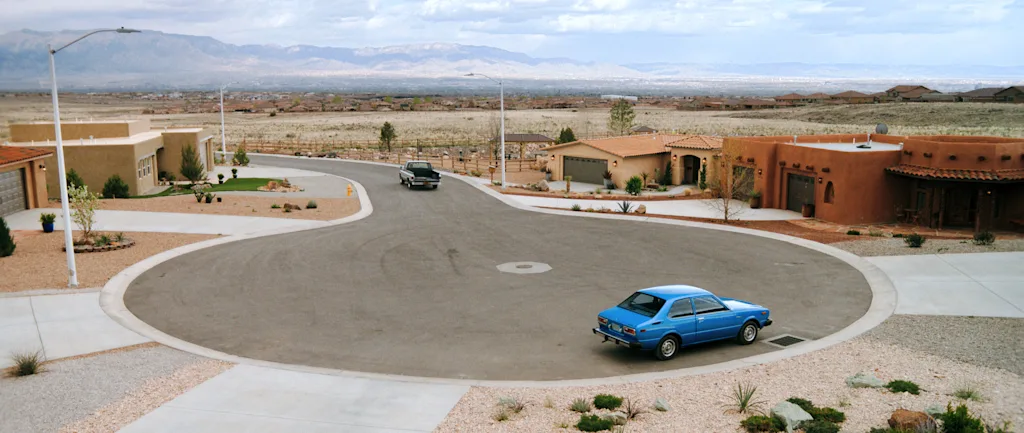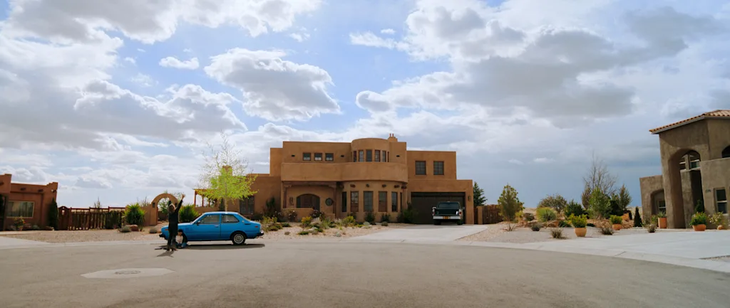 That doodle evolved into a big civil engineering project. Rather than fighting the logistical nightmare of filming in a real neighborhood for multiple seasons, Pizzini and her team leased a plot of empty land outside Albuquerque and built Carol’s cul-de-sac from the dirt up, complete with plans and full permits and licenses. They poured concrete slabs, laid curbs, and constructed seven custom homes around a circle of asphalt, which became itself a way to communicate later in the series (warning: some minor generic spoilers ahead).